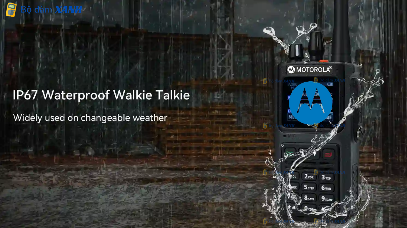 • Bộ đàm Motorola RMU2080D IP67 chống nước hỗ trợ sử dụng bình thường trong những ngày mưa hoặc trong môi trường ẩm ướt; bạn sẽ không lo bị rơi xuống nước đột ngột